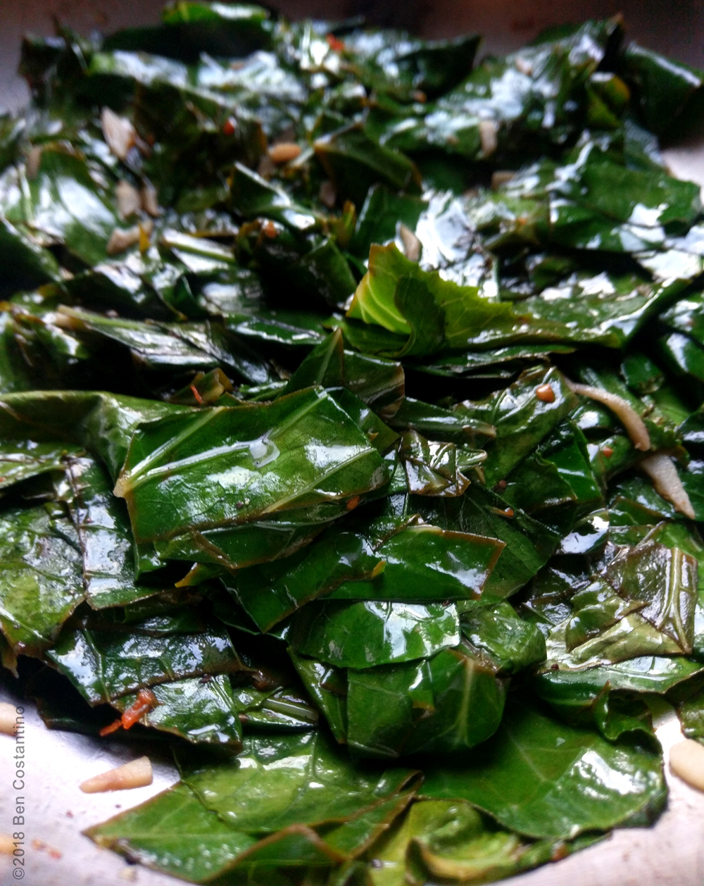 collard greens, baby eggplant
